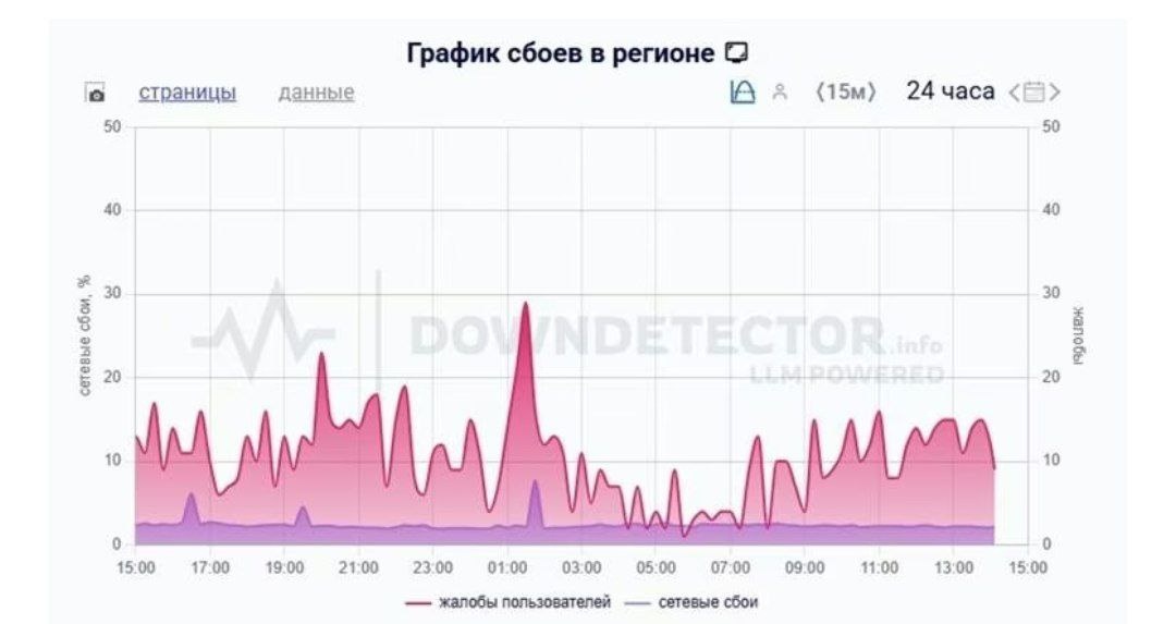 ⚡В Новосибирске сегодня снова были массовые сбои в работе мобильного интернета: 85% пользователей сообщали о полном отсутствии доступа