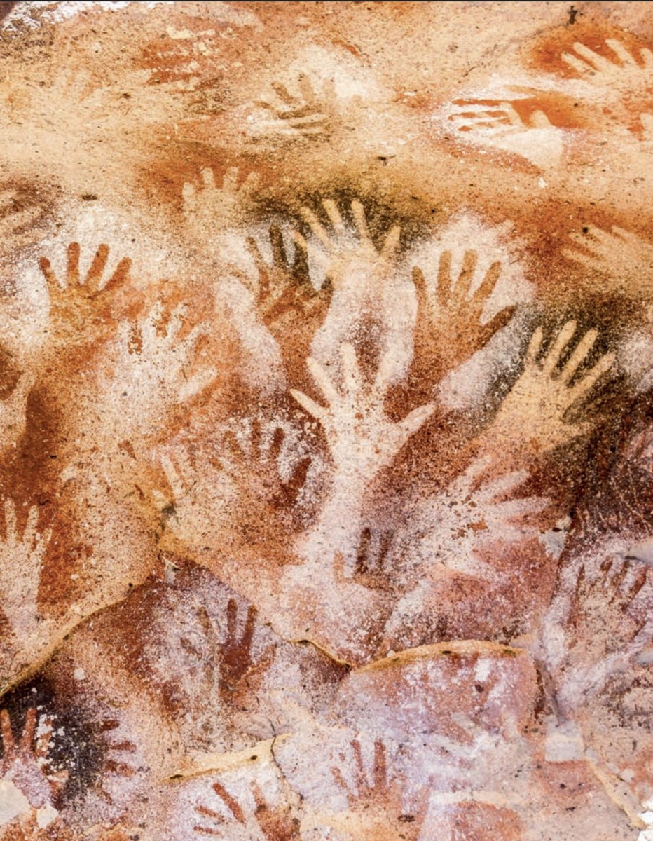 🖐 На юге Аргентины есть место, где можно дать пять древнему человеку! Это пещера Куэва-де-лас-Манос, что в переводе с испанского означает «Пещера рук». Нетрудно догадаться, что подарило ей такое название — скалистые стены покрыты изображениями ладоней. Они были сделаны примерно 9–13 тысяч лет назад. Отпечатков более 800, и большинство из них левые. По всей видимости, их авторы прикладывали левую ладонь к стене, а правой обмазывали руку смесью на основе цветных минералов. Из оксидов железа получался красный цвет, из оксида марганца — чёрный, из каолинита — белый, а из натроярозита — жёлтый. ❓Судя по размеру, ладони принадлежали мальчикам лет тринадцати. Вероятно, в пещере проходила церемония инициации, т. е. перехода из детского возраста во взрослую жизнь. По другой версии, здесь проводились охотничьи обряды: помимо ладоней, на стенах изображены животные и сцены охоты. А может, древние художники просто пытались создать что-то впечатляющее и оставить послание будущим поколениям. Из ж