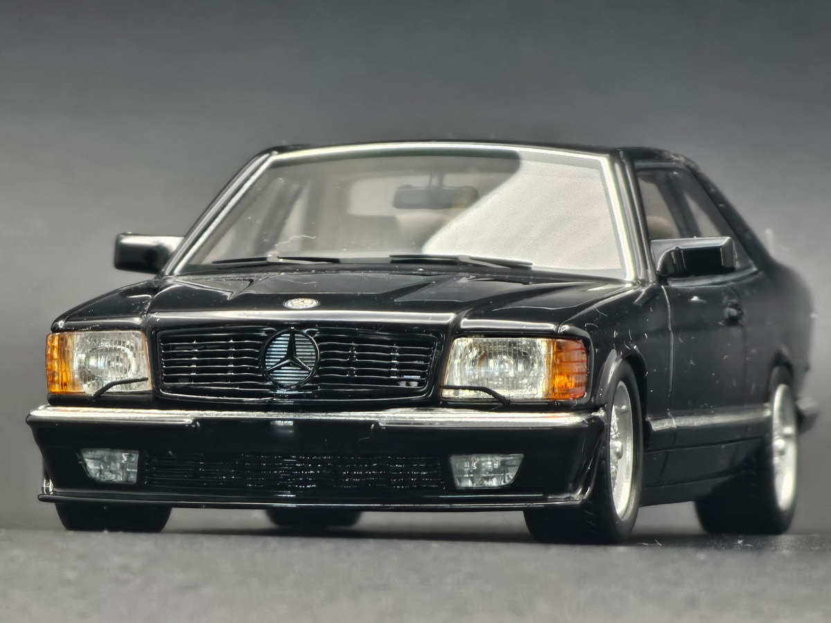 Фотообзор модели MERCEDES-BENZ 560 SEC Lorinser (1987) C126 black от компании Top Marques в масштабе 1/43. Просто фото модели. Модель изготовлена из смолы. Донышко, как и у большинства моделей из смолы примитивное. Остекление плёнка, но выполнено довольно аккуратно. Отлично проработан и окрашен салон. Имеется детализация потолка. В наличии ремни безопасности с замками из фототравления. Очень красивая и правдоподобная оптика. Стеклоочистители на фарах из травления. Имеется фирменный спойлер Lorinser. Качественные колёсные диски. Есть намёки на нипели. Качественная окраска и глянец. Ручки дверей отлиты заодно с кузовом. В левом заднем крыле присутствует антенна. Артикул производителя TM43-008B. Тираж в данном цвете 500 экземпляров. Помимо чёрного цвета Top Marques выпустила данную модель в белом и серебристом цветах. Модель вышла в продажу в 2022 году. Сейчас в продаже практически не встретить. В целом очень красивая и приятная модель! В последующих статьях приведу фотообзоры на модели л