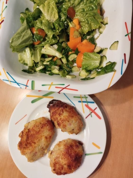 Обычно я в рыбные котлеты еще белый хлеб добавляю, размоченный с молоке. Сегодня без хлеба и молока.