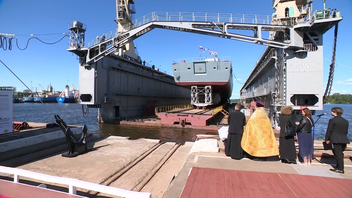 На заводе «Северная верфь» спустили на воду фрегат «Адмирал Амелько