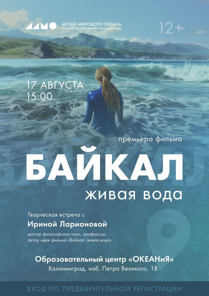 Что бесплатно на выходных: просмотр документального фильма «Байкал: живая вода» в музее Мирового океана Кстати, это премьера. Гостей ждут 17 августа в 15:00. После кинопросмотра состоится творческая встреча с автором идеи фильма, доктором философских наук, профессором Ириной Ларионовой. Она ответит на вопросы о создании фильма. Обязательна регистрация по ссылке.