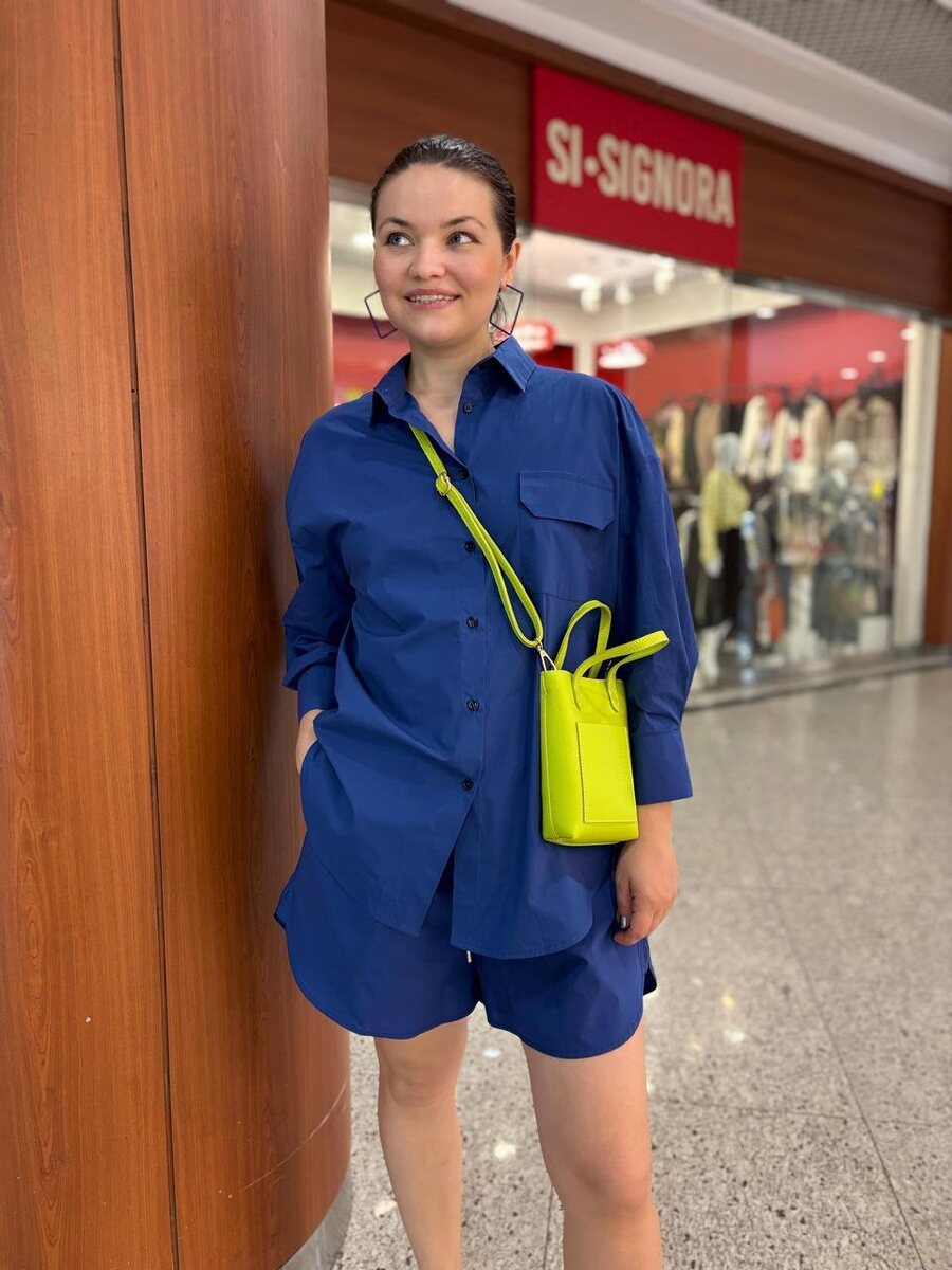 •Костюм хлопковый в глубоком синем цвете ❤️ Рубашка+шорты VICOLO ITALY 🇮🇹 Размер единый 46-50 14.500₽ •Сумочка лайм🍋🟩 Носим через плечо и как мини торбу - супероригинальная вещь Италия 🇮🇹 4.200₽ Как Вам такое сочетание? Ставьте лайк 👍🏻 , если нравится 👍🏻