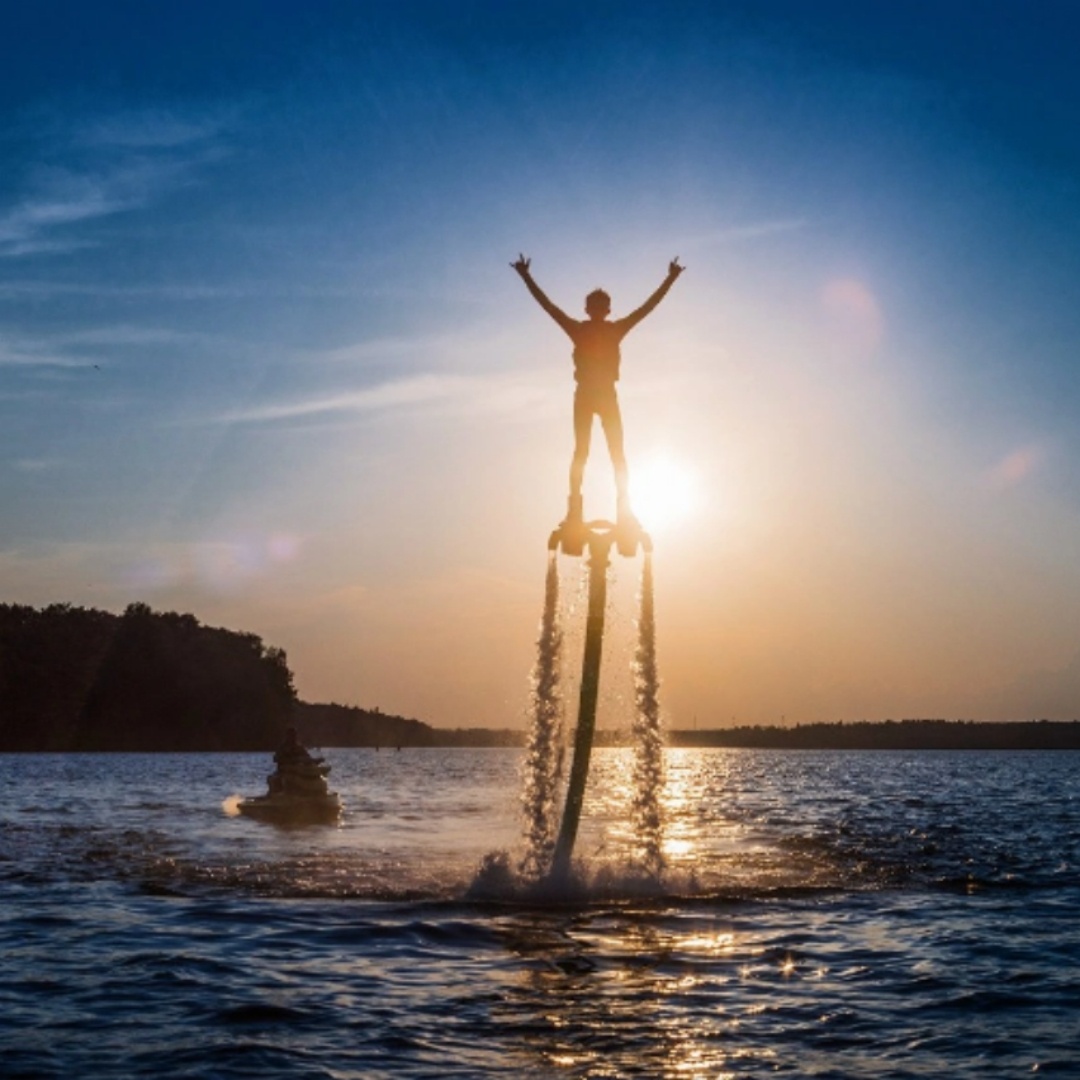 Вы когда-нибудь мечтали о том, чтобы парить над водой, как супергерой? Позвольте представить вам новейший водный экстрим - полет на флайборде! Это не просто развлечение, это настоящее приключение, которое заставит ваше сердце биться быстрее. Как это работает? Что вам нужно для первого полета? В этой статье мы раскроем все секреты. Готовы ощутить свободу и адреналин? Давайте узнаем больше! Если вы ищете оригинальный подарок для близкого человека или хотите порадовать себя, полет на флайборде станет идеальным вариантом. Это развлечение сочетает в себе элементы экстрима и водного спорта, и оно точно не оставит равнодушным никого — от искушенных адреналинщиков до тех, кто просто хочет попробовать что-то новое и необычное. Флайборд — это уникальная «летающая доска», которая позволяет вам парить над водой, словно супергерой. Конструкция состоит из доски, на которой жестко закреплены специальные ботинки, и двух ручных стабилизаторов, которые представляют собой водометы. Эти водометы соединены