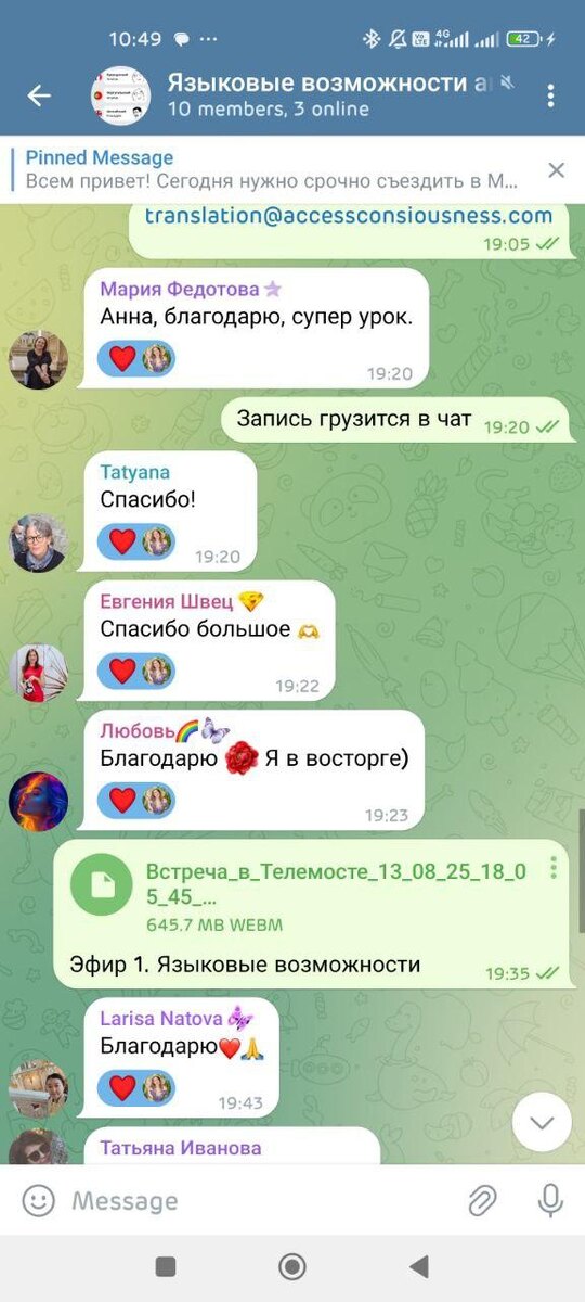 🚀 Языковые ВОЗМОЖНОСТИ уже начались! Друзья, вчера состоялся первый созвон нашего класса "Языковые возможности" и... WOW! ✨ Что происходило в эти два часа: 🔹 Рассматривали энергетические барьеры: почему знаем, но не говорим 🔹 Разбирали культурные программы - вдруг изучение языка предательство родины? 🔹 Исследовали подсознательный саботаж своих же желаний 🔹 Активировали транслитерацию - способность понимать языки энергетически 🔹 Погружались в историю создания языков для разделения людей А что, если все ваши языковые "трудности" - это просто энергетические барьеры? ⚡️ Мы обнаружили, что: ✨ Американцы не парятся из-за незнания других языков, а мы стыдимся ✨ Мы не обязаны знать английский, хотя считаем, что должны ✨ Языки могут открыть невероятные возможности, если убрать внутренние блоки Энергия класса была потрясающая! 💎 А что возможно для ВАС здесь? 🌟 Может быть: 🦄 Свободное общение в путешествиях 🦄 Новые карьерные возможности 🦄 Отношения без языковых границ 🦄 Доступ