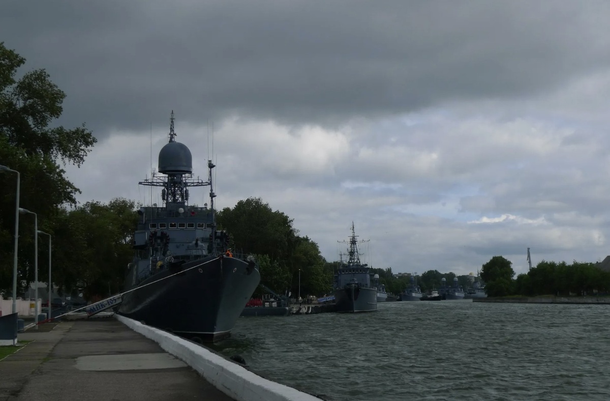 Уютная набережная с видом на корабли в Балтийске