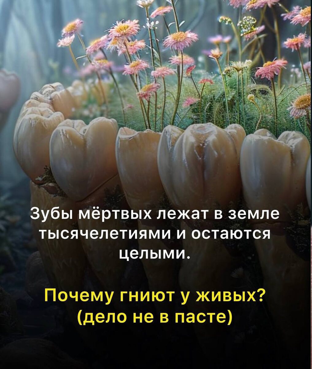 У мертвых нет налета, в котором живут микробы, мертвые не едят углеводы, а это то, чем питаются кариозные микроорганизмы, выделяют кислоту, которая собственно и разрушает зуб.
