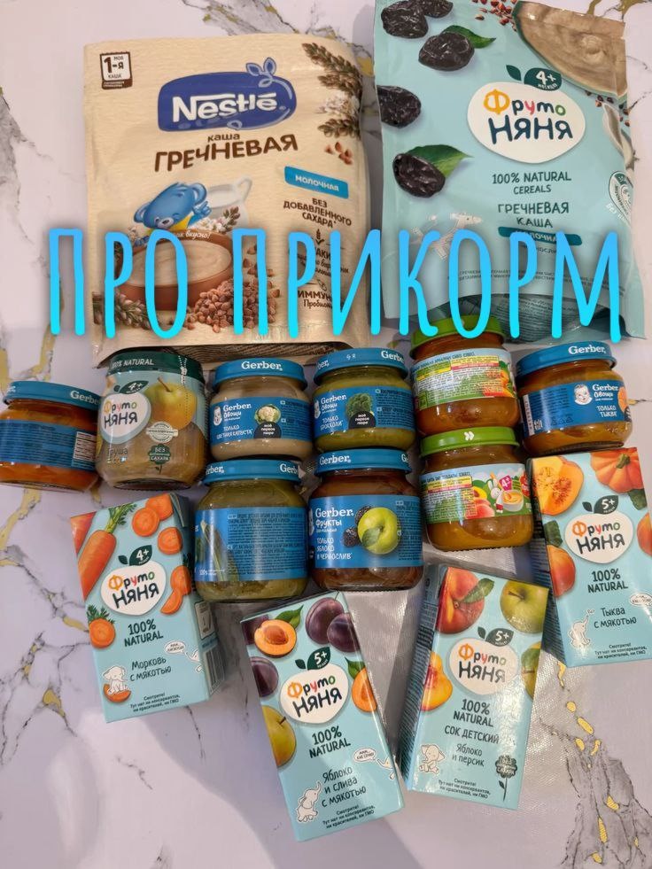 Цель прикорма – дополнение рациона ребенка пищевыми веществами и переход от грудного 🤱молока (детских смесей🍼) на продукты общего стола