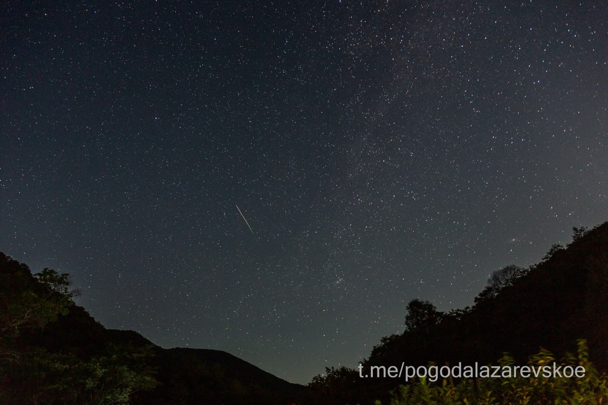 Фотоохота на Персеиды принесла такие трофеи. Поймал в кадр несколько ярких метеоров, но штук семь точно — пролетели мимо: то выше, то сбоку. Впрочем, насмотрелся вдоволь. Есть ещё кадры с метеорами, но они совсем небольшие. Между этими снимками — примерно полчаса разницы. Небо выглядит по-разному из-за Луны, которая поднималась всё выше, но для ярких метеоров это не помеха. Кстати, на первом снимке справа, над горой, можно разглядеть галактику Андромеды — ту самую «звезду» с туманным ореолом. На втором снимке туманность видно уже хуже. #метеорит@pogodalazarevskoe 🏖 Погода Лазаревское