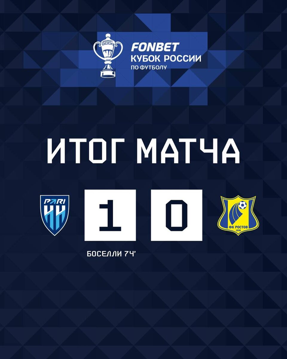 Матч 2-го тура группового этапа Кубка России между ФК «Ростов» и «Пари НН» закончился поражением жёлто-синих — 1:0. Встреча прошла в Саранске на стадионе «Мордовия Арена».