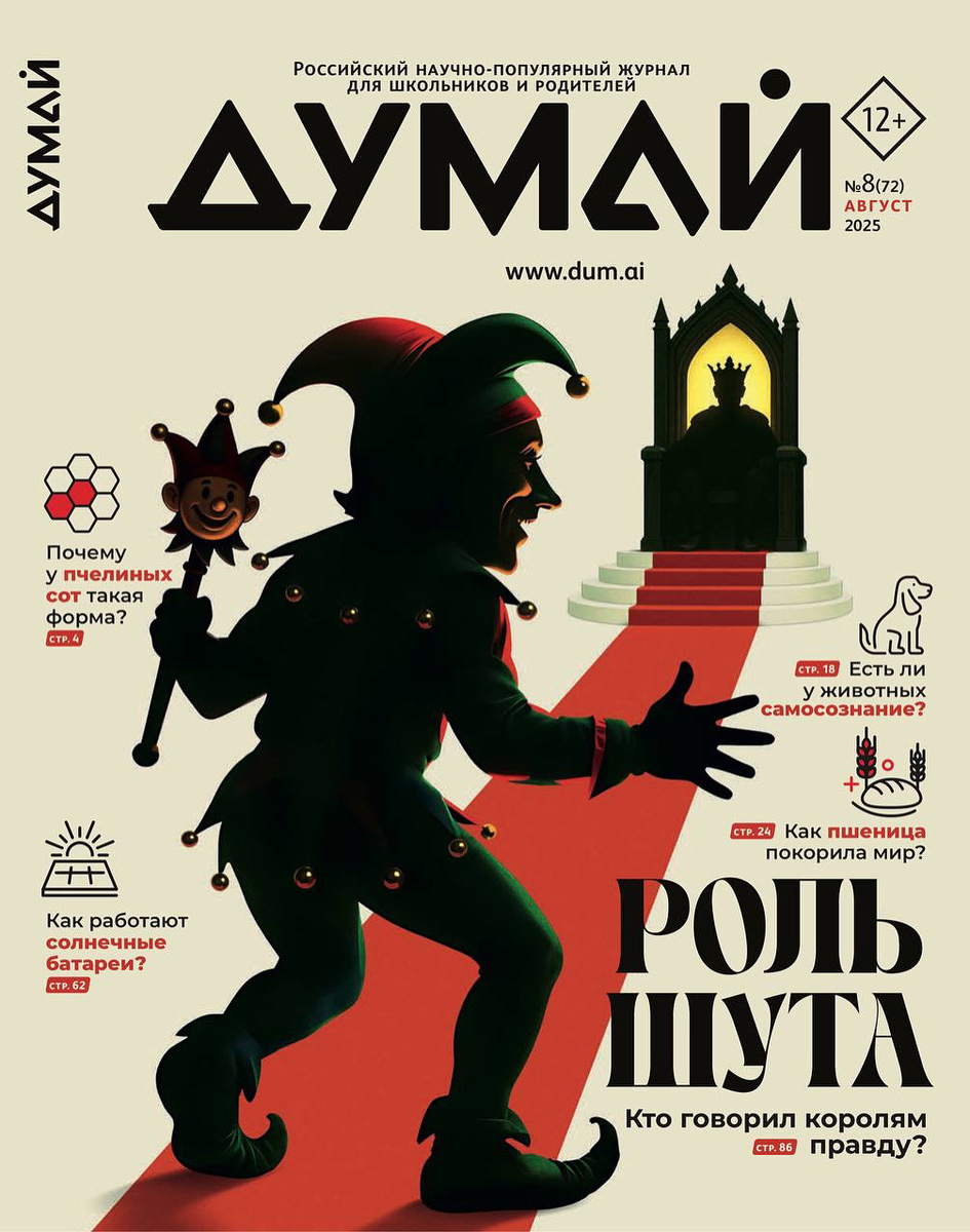 Только в новом выпуске — много удивительных тем, которые заставят тебя сказать: «Я этого не знал!»: 👑 Как выжить, шутя с королём? — опасная профессия придворных «дураков». 🌌 Почему сияют северные огни? — научное объяснение магии полярного сияния. 🌾 Как пшеница завоевала мир? — история главного злака человечества. 💉 Гомеопатия: наука или миф? — разбираемся без предубеждений. 🤖 Чем «кормят» искусственный интеллект? — и почему ему нужно так много данных. 🌿 Кто спасёт Землю от эрозии? — технологии будущего для сохранения почв. ♟️ Эксклюзивное интервью с гроссмейстером Сергеем Карякиным! А ещё: ▫️ Тайна апельсина — чего больше: мякоти или кожуры? 🍊 ▫️ Как работает капиллярность? 💧 ▫️ Почему железные дороги имеют разную колею? 🚂 👉 Наш журнал — для тех, кто любит науку, историю и нестандартные вопросы! 🚀ВЫТАЩИ РЕБЕНКА ИЗ ГАДЖЕТА! Оформи сегодня подписку на журнал ДУМАЙ «за два клика» на сайте редакции - www.dum.ai 🙌🏻 Доставка входит в стоимость. Жу