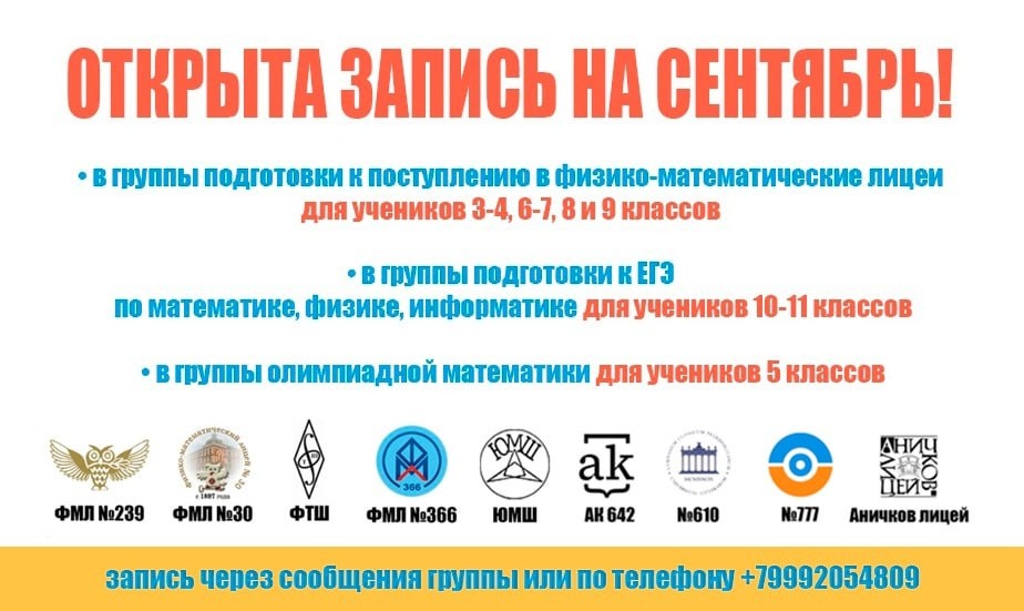 Для учащихся 11 классов - курс подготовки к профильному ЕГЭ по математике, занятия групп проходят с сентября и до экзамена первой волны (возможен набор группы для экзамена второй волны).