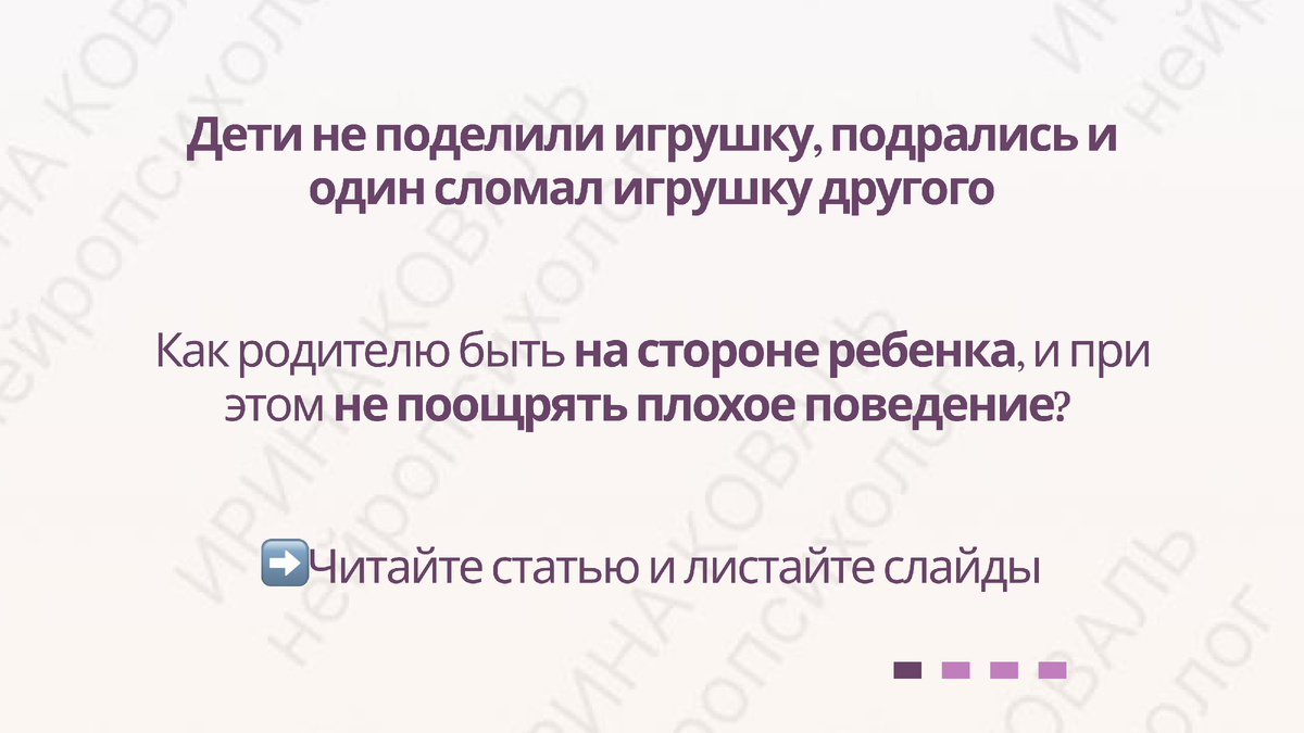 Это про баланс между безусловным принятием и установлением границ. Вот так выглядит на практике “быть на стороне ребенка”: ✔️Принимать его чувства и переживания всегда: "Я вижу, что ты очень злишься", "Похоже, тебе было очень обидно", "Я понимаю, почему ты так расстроен". Даже если чувства кажутся вам неадекватными или преувеличенными, они реальны для ребенка. ✔️Верить в лучшие намерения ребенка - он не хотел сделать плохо изначально, а действовал из-за непонимания, сильной эмоции или ошибки. "Я знаю, что ты не хотел так сильно толкнуть сестру", "Ты, наверное, очень хотел эту игрушку и не смог сдержаться". ✔️Отделять поступок от личности ребенка. Транслировать, что ваша любовь и ценность ребенка для вас не зависят от его ошибок или "плохого" поведения. "Я люблю тебя всегда, даже когда не одобряю твой поступок". ✔️Защищать его интересы и потребности (в разумных пределах) перед учителями, другими детьми, родными, когда это необходимо. ✔️Подходить к ситуации не с позиции обвинения - "Ты п