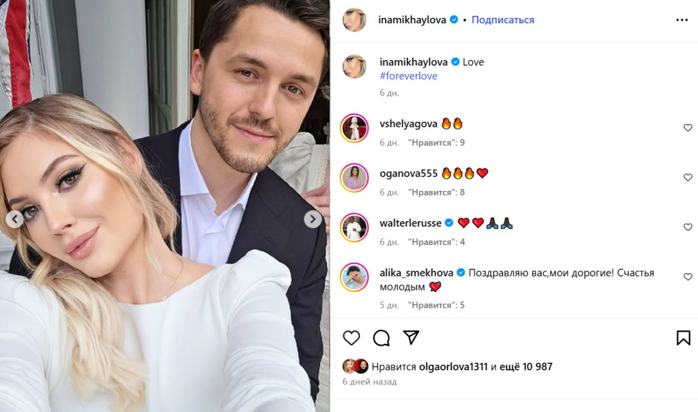 Падчерица Стаса Михайлова стала законной супругой своего давнего возлюбленного. Решение пары расписаться застало родителей девушки врасплох. Чтобы увидеть наследницу в белом платье, Инна Михайлова и ее супруг преодолели немало препятствий, но в итоге успели добраться до Лондона в оговоренные сроки. Мероприятие прошло в узком кругу, на нем присутствовали только родственники и самые близкие друзья Евы и Александра. Несмотря на заявленный скромный формат, столица Великобритании, по словам очевидцев, встрепенулась от «русской свадьбы». В тот вечер молодые танцевали под известные российские хиты, среди которых не обошлось без пресловутого шансона. Особенно душевно гости распевали песни Михаила Круга. «Невероятно красивая»: Навка пришла в восторг, увидев взрослую дочь Инны Михайловой Ева родилась в первом браке возлюбленной Стаса Михайлова. С футболистом Андреем Канчельскисом Инна до определенного момента воспитывала двоих наследников – Андрея и Еву. Когда артист воспылал чувствами к блондин