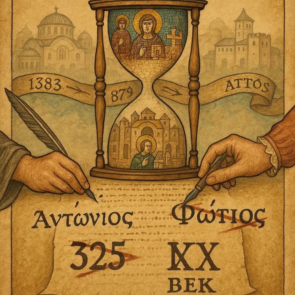 - Отсутствие ранних упоминаний: Имя ΦΩΤΙΟΣ отсутствует в списках до XI в. и появляется синхронно с датами «858–867», что подтверждает искусственное ретродатирование.