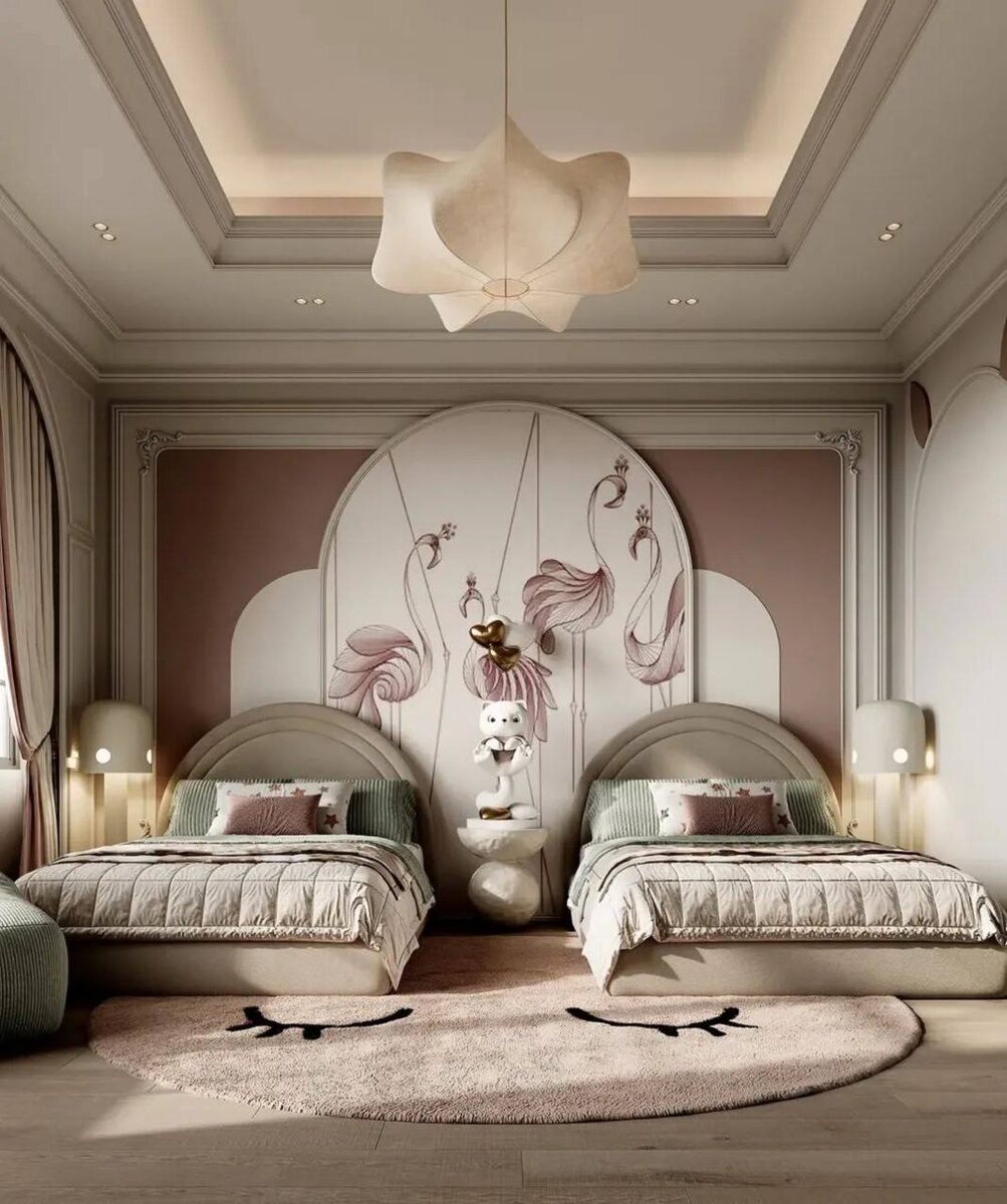 Двойной уют🎀🌿 Две сестры - это двойное счастье, двойной смех и... двойное количество идей, как обустроить свою территорию. В этой комнате идеальный баланс между личным пространством и зонами для общения. Просторные кровати с высокими изголовьями не просто место для сна, а настоящие островки комфорта, где можно устроить пижамную вечеринку или читать сказки при свете ночника. Системы хранения продуманы так, чтобы у каждой маленькой хозяйки было место для своих сокровищ, а общие полки становятся площадкой для совместного творчества. В этой комнате рождаются общие воспоминания и укрепляется сестринская связь. 🥇 Перейти в меню Mamka → #детскаядляребенка #детскаядлядевочки #детскаядлядвоих