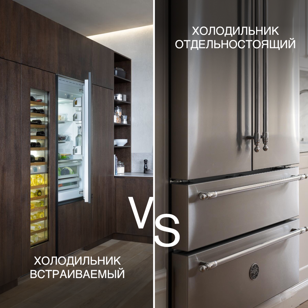 Это один из ключевых элементов кухни, который влияет на комфорт, эстетику и даже гастрономические привычки. Особенно если речь идёт о премиум-сегменте. Выбирая холодильник высокого класса, стоит учитывать не только дизайн, но и нюансы: тип установки, внутреннюю компоновку, уровень шума и энергоэффективность. Bertazzoni, как эксперт в сфере кухонной техники, делится профессиональными рекомендациями. Встраиваемый или отдельностоящий? Встраиваемый холодильник — идеальное решение для интерьеров в стиле минимализм, неоклассика и хай-тек. Он интегрируется в мебель, не нарушая композиции. Отдельностоящий — акцентный элемент кухни. Особенно если речь идёт о моделях Bertazzoni: техника с выразительными фасадами из нержавеющей стали и фирменными ручками серии Professional способна стать центральным объектом интерьера. 💡 Совет дизайнерам: на этапе проектирования кухни важно учесть габариты встроенной ниши, способ вентиляции и угол открывания дверей. Bottom Mount или French Door? ● Bottom Mount (