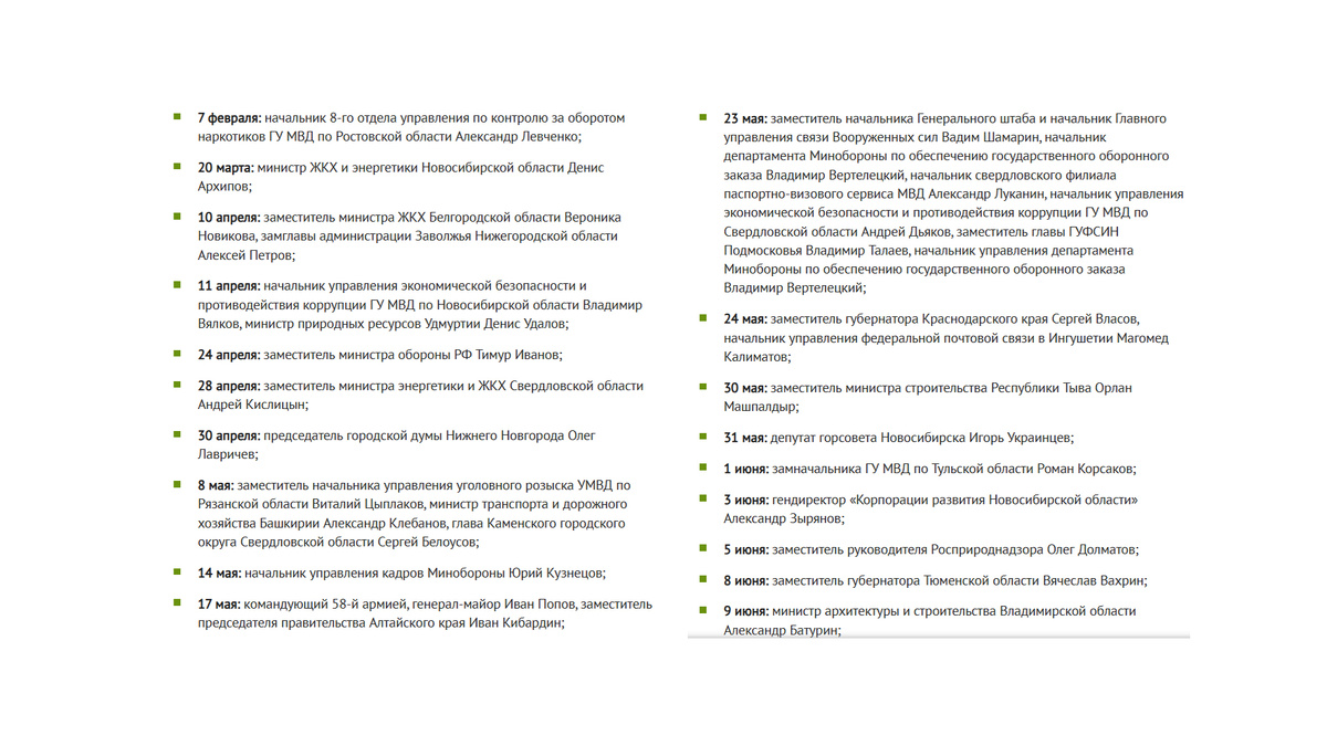 ✅ Есть случаи, о которых все знают. Это как пример задержание бывшего заместителя министра обороны Тимура Иванова, которого приговорили к 13 годам колонии строгого режима за взятки в размере более 1 млрд рублей.