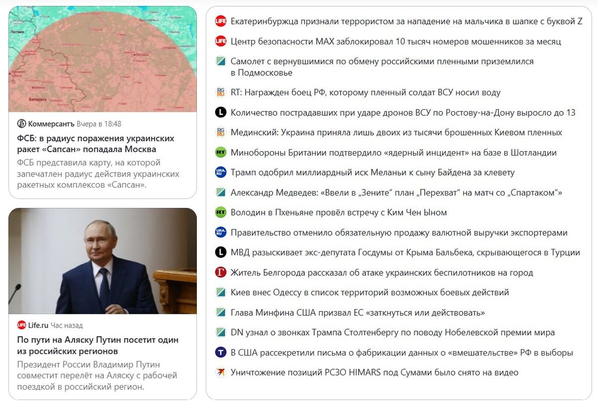 Новостная повестка в России перед переговорами Карта радиуса поражения украинских ракет, удары БПЛА по Ростову и Белгороду, уничтожение HIMARS — это прямое напоминание о том, в какой обстановке Россия входит в диалог. Параллельно — сообщения о ядерном инциденте на британской базе, обмене пленными, визитах на высшем уровне в КНДР и регионы, резкие заявления США и ЕС. Повестка говорит о том, что Россия в ходит в переговоры в условиях полной боевой готовности, без иллюзий, с чёткой повесткой безопасности.