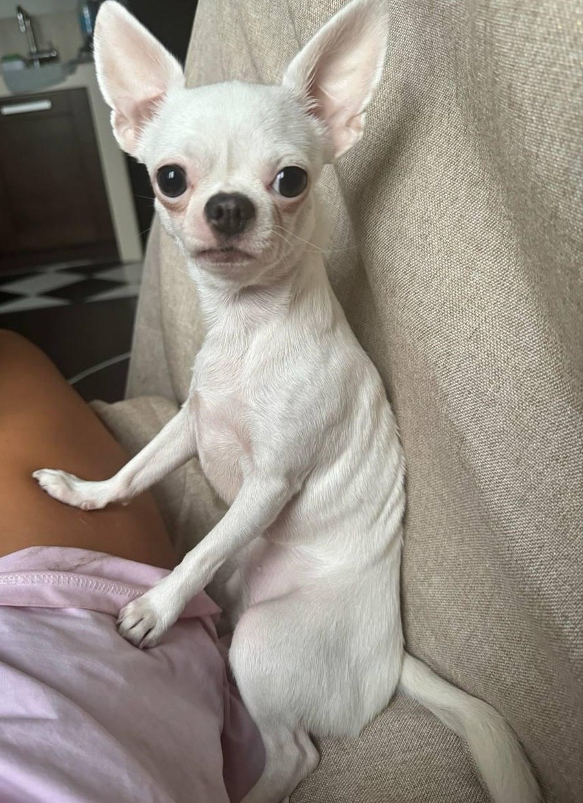 💬«Собаку посекло осколками, больше её местонахождение неизвестно. Собака чихуахуа, возраст 2 года, белая, с правой стороны небольшое коричневое пятно. В момент атаки собака была на поводке и в розовой шлейке»