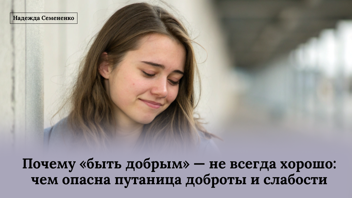 Настоящая доброта всегда включает справедливость — в том числе по отношению к себе. Она не требует предательства своих границ. А вот «добренький» человек действует из страха отвержения: говорит «да», когда внутри кричит «нет», надеется, что уступчивость принесёт любовь и признание.