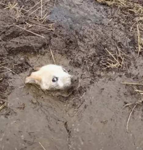 Малыш из последних сил пытался выбраться на твёрдую землю, но его лапки беспомощно скользили по мокрой траве и илу, и он снова и снова соскальзывал обратно в грязное месиво.