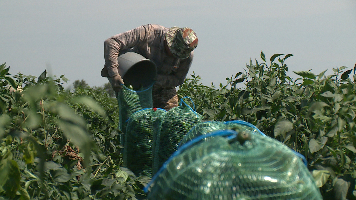 На полях Среднеахтубинского района идет сбор мексиканской культуры – халапеньо. В этом году жгучий перец порадовал хорошим урожаем. Сбор начали на неделю раньше срока. Фото: Владислав Кулаков «Халапеньо не сразу острит: ты его облизнул – вроде ничего, а проходит 2-3 минуты – начинает все жечь», – говорит индивидуальный предприниматель Андрей Костецкий. Такая уж эта культура – «с огоньком». В хозяйстве Среднеахтубинского района выращивают халапеньо средней жгучести. К уборке урожая здесь преступили неделю назад. В мешки попадает только крупный перец. «С одного куста можно одно ведро набрать», – говорит работник. Важный показатель качества перца – толщина стенки не меньше 6-7 миллиметров. Урожай может быть зеленого и красного цвета. «Это он переходит с технической спелости на биологическую. Техническая спелость – это когда продукт достиг своей максимальной массы, но еще не дошел до момента увядания, когда вкусовые качества, размер – все в достатке. Биологическая спелость – это он уже пол