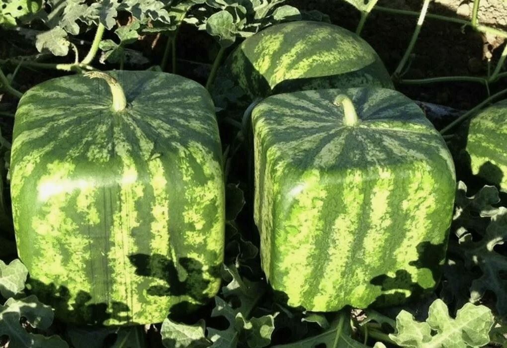 Квадратные (или кубические) арбузы – это не генномодифицированные плоды, а обычные сорта, выращенные в специальных формах. Такой метод придумали в Японии для удобства транспортировки и хранения.