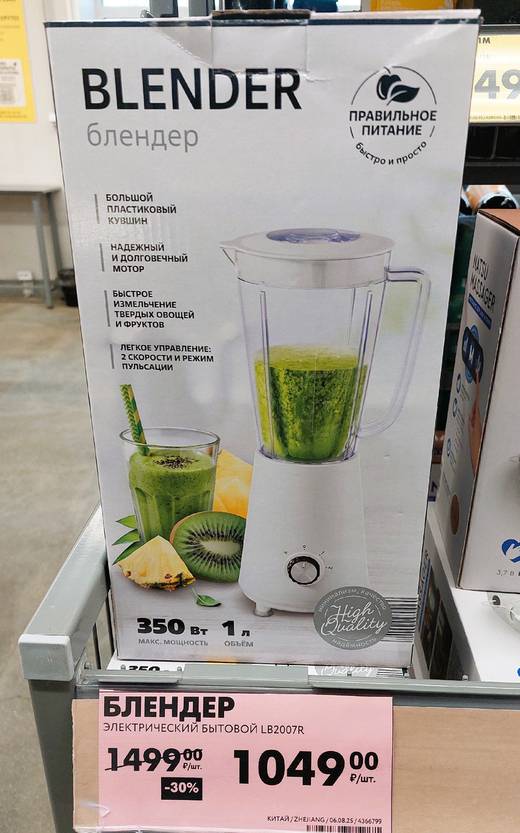 На 30% "подешевел" отличный Блендер электрический, стационарный. Мощность 350Вт, турбо мотор, чаша 1 л. Страна Китай. Цена 1049 рублей.