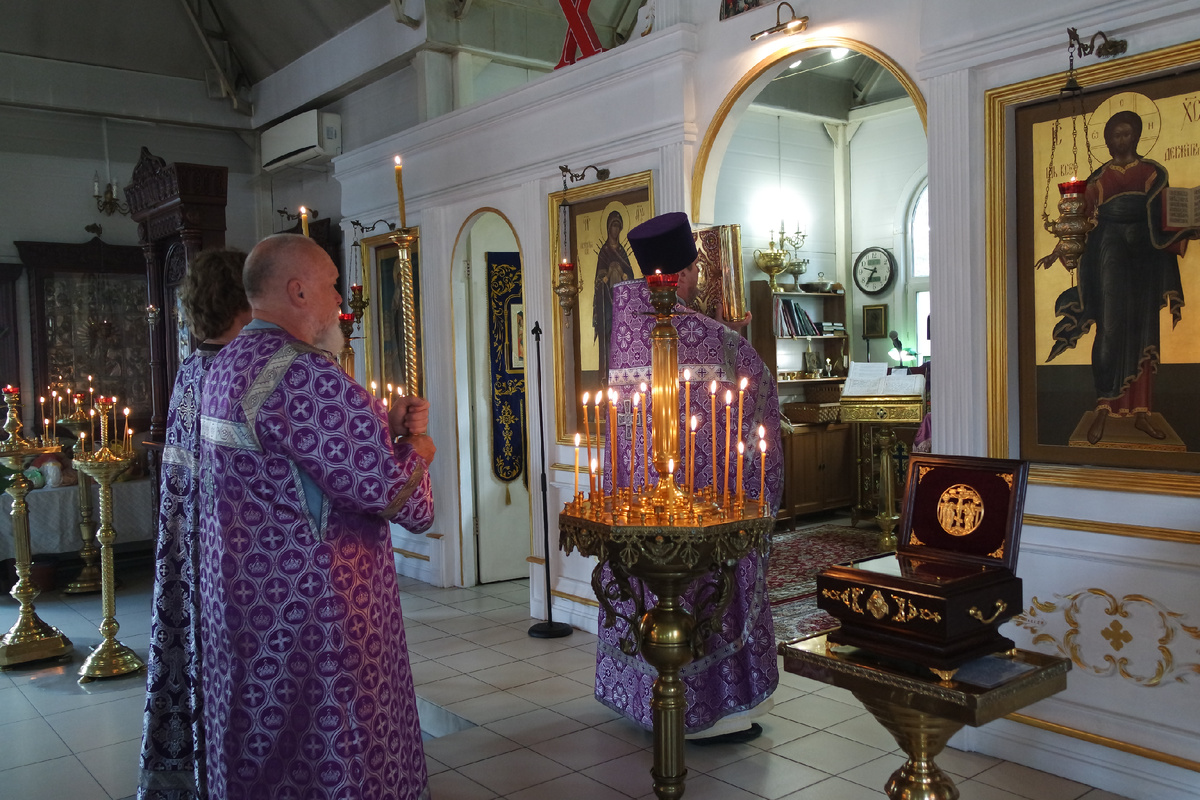 Богослужение в храме священномученика Серафима в день празднования Происхождения (изнесения) Честных Древ Животворящего Креста Господня