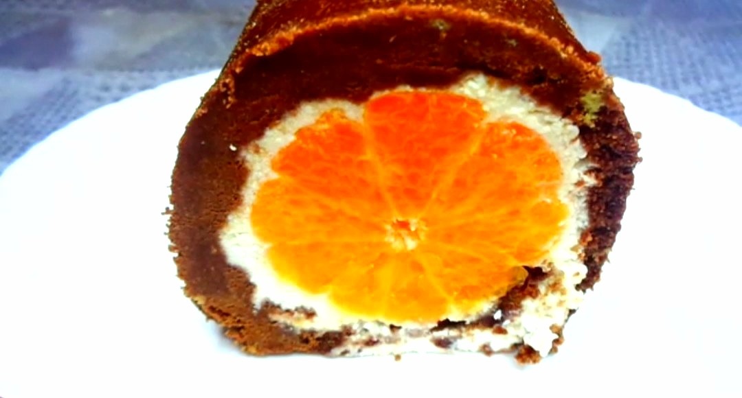 Десерт к чаю для всей семьи, вкусный и простой в приготовлении. 7. Свернуть все в рулет при помощи пищевой плёнки. 8. Плотно завернуть рулет в пищевую плёнку, убрать в морозилку на 2 - 3 часа. 9. Спустя время достать рулет, снять пищевую пленку, разрезать на порционные кусочки и подать к столу. Такой рулет можно приготовить и подать на праздничный стол, творожно-мандариновый рулет вкусное лакомство для детей и взрослых, не занимает много времени при приготовлении и не нужно выпекать, просто и вкусно. Попробуйте приготовить. Приятного аппетита.