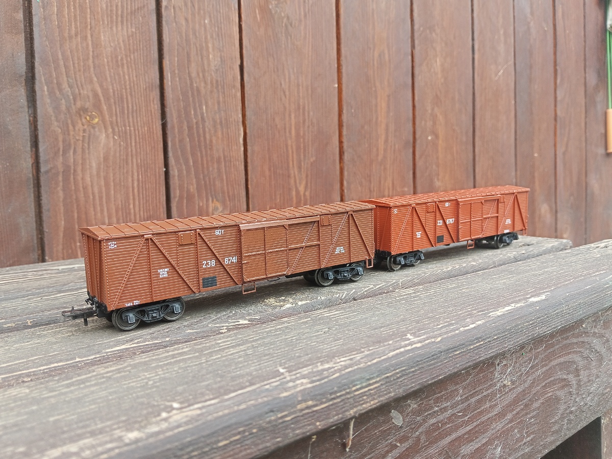 Представляю Вашему вниманию модели крытых вагонов 11-38 в масштабе 1:87 (типоразмер Н0). Модели собраны Константинов Колтаковым. Вагоны собраны из КИТов (наборов для самостоятельной сборки) производства ТО "СВРЗ". Поручни составителя и расцепители были сделаны из проволоки. Окраска производилась нитрокрасками Mr hobby и автоэмалями. Были нанесены декали из тех, что были в наличии. На более темном вагоне номер пришлось набирать по одной цифре. На этих вагонах не планируется останавливаться, в планах собрать еще несколько подобных на других тележках, с другой нумерацией (шестизначная до 1963 года) и в других цветах. Канал "ПАНТОГРАФ". Информация и фото Константин Колтаков. ОКАЗАТЬ ФИНАНСОВУЮ ПОДДЕРЖКУ КАНАЛУ МОЖНО ПО ССЫЛКЕ: ПОДДЕРЖАТЬ КАНАЛ. Наша группа в ВК: ПАНТОГРАФ - присоединяемся к нашей группе поддержки Другие материалы канала: