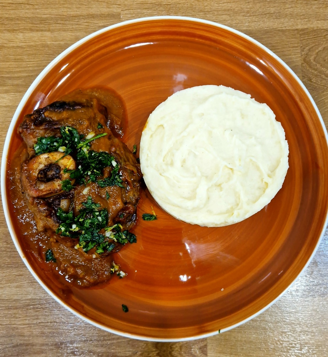 Оссобуко — традиционное блюдо миланской кухни и блюдо, которое я частенько готовлю с утра в выходные: ставлю в духовку и иду заниматься своими делами. Спустя 2,5 часа — обед готов! Готовят оссобуко из говяжьих голяшек и овощей. Подают с гремолатой — популярной итальянской приправы из петрушки, чеснока и лимонной цедры.