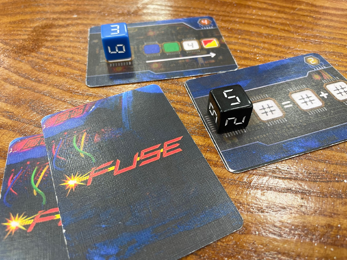 Fuse — игра на время, где все участники действуют как одна команда. За 10 минут задача игроков — обезвредить все бомбы (карточки) в игре, количество которых зависит от выбранного уровня сложности.