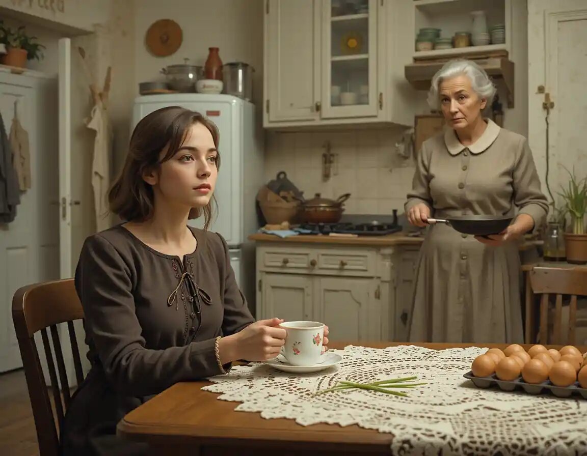 На кухне всё было по-старому: кружевная скатерть, старенький «Бирюса», гудящий, как старый трактор. Наталья Петровна всё это окинула взглядом. В её взгляде всегда было что-то проверяющее, как у инспектора — ни одна мелочь не ускользнёт.