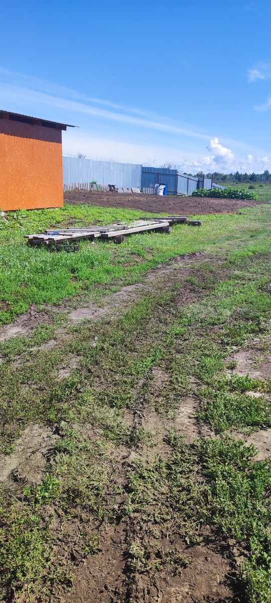 Дела на смежном участке продвигаются. На первом фото начало работ. Вспахан квадратик для моего райского уголка, дальше небольшой огород. Я рассказывала, зачем мне понадобилась эта земля? Напомню, я продала квартиру, взяла кредит и купила дом. С домом идут 10 соток земли. Но они заняты постройками. Представьте узкий прямоугольник. Со стороны дороги дом, гараж, между ними небольшой двор. Далее старая баня, сарай, курятник. Далее старая стеклянная теплица, домик енотовидной собаки, теплица для куриц, будка. Поперек участка, почти во всю ширину, кошачий дом. Далее собачьи вольеры и небольшая площадка перед ними. Затем огороженное пространство, где вольер Барсика и владения Чипса с курочками.