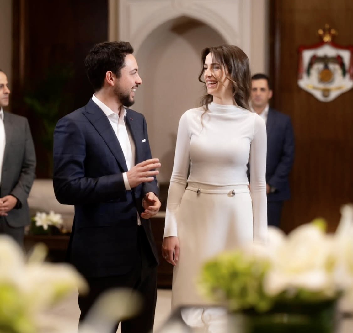 Принцесса сопровождала мужа на встрече с учениками Накануне неожиданностью стало появление иорданскрй принцессы на встрече наследника короны со школьниками во дворце Басман. Кронпринц Иордании Хусейн и его жена устроили прием с поздравлениями лучшим ученикам старших классов, которые набрали больше всего баллов по учебе. Нас интересует не только то, как много говорили кронпринц Хусейн и его супруга о важности учебы и знаний, но и что было на Раджве в этот раз. Супруга кронпринца выбрала на встречу с учащимися белое. Как я понимаю из фотохроник знаменитостей, белый не сдаёт позиции. На Раджве мы видим: * Комплект из мини-коллекции коллаборации Chatsbycdam x RimaZahran . Трикотажный топ и брюки белого цвета с запАхом * Сумка от Дома Alaia «Mina 20» из черной телячьей кожи с ажуром *Черные кожаные мюли с пряжкой в стиле панк от Александра Маккуина * Серьги-сердечки из бриллиантов в белом золоте от бренда Haja