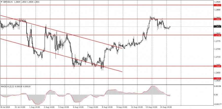 https://basechop.ru/wordpress/?p=54131 Разбор сделок четверга: 1Н график пары GBP/USD. Пара GBP/USD также скорректировалась немного вниз в четверг на фоне высокого PPI. Как мы уже говорили, даже высокое значение индекса цен производителей практически ничего не меняет в ожиданиях рынка по смягчению монетарной политики ФРС в сентябре. Ставка будет снижена практически гарантированно. И это очередной «медвежий» фактор для американской валюты. Зато PPI ставит под сомнение дальнейшее, более сильное понижение ключевой ставки, о котором говорили Дональд Трамп, Скотт Бессент, а также «республиканские» члены FOMC. До тех пор, пока Пауэлл остается председателем ФРС, рассчитывать на глобальное смягчение не стоит. А растущая инфляция заставит ФРС балансировать между поддержкой рынка труда и сдерживанием инфляции. Таким образом, до конца года при текущих макроэкономических показателях следует ожидать лишь два этапа снижения ключевой ставки. Для доллара это в любом случае плохие новости, так как Ба