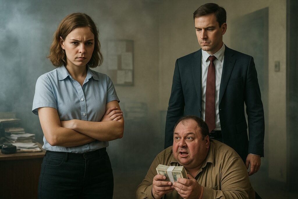 — Все видели! — заорал Прохор, грубо вытолкнув Машу на центр. — Она украла деньги у клиента! Я её увольняю!