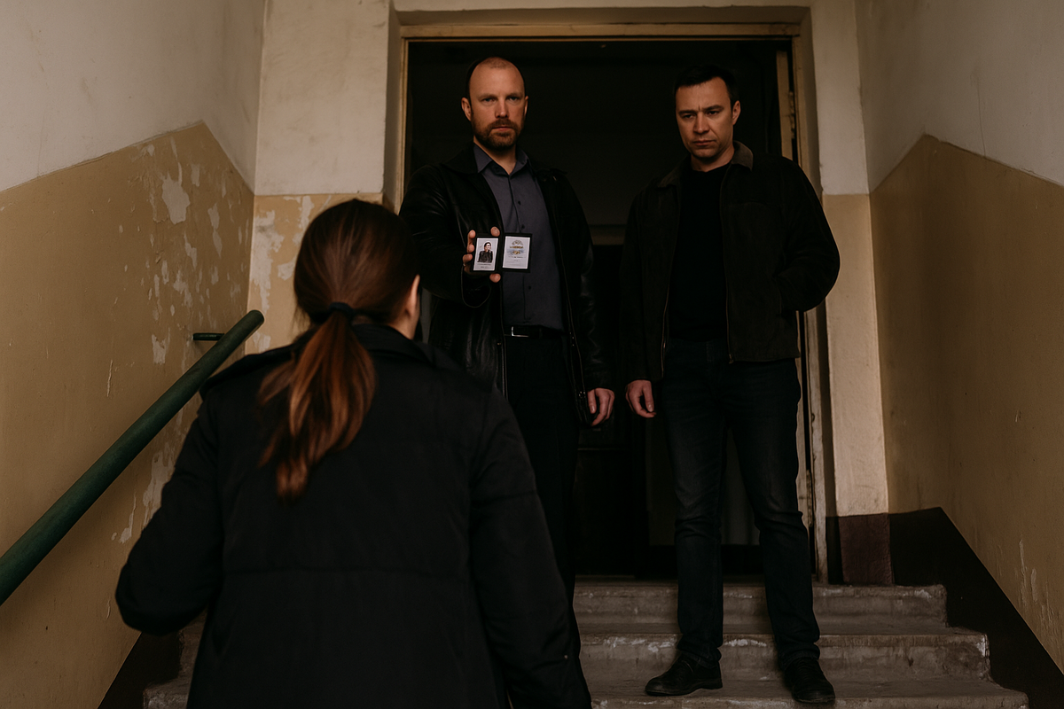Возвращаюсь домой после работы, поднимаюсь на свой этаж, а около двери стоят два мужчины. Один в строгом костюме, второй в кожаной куртке. При виде меня достают удостоверения.