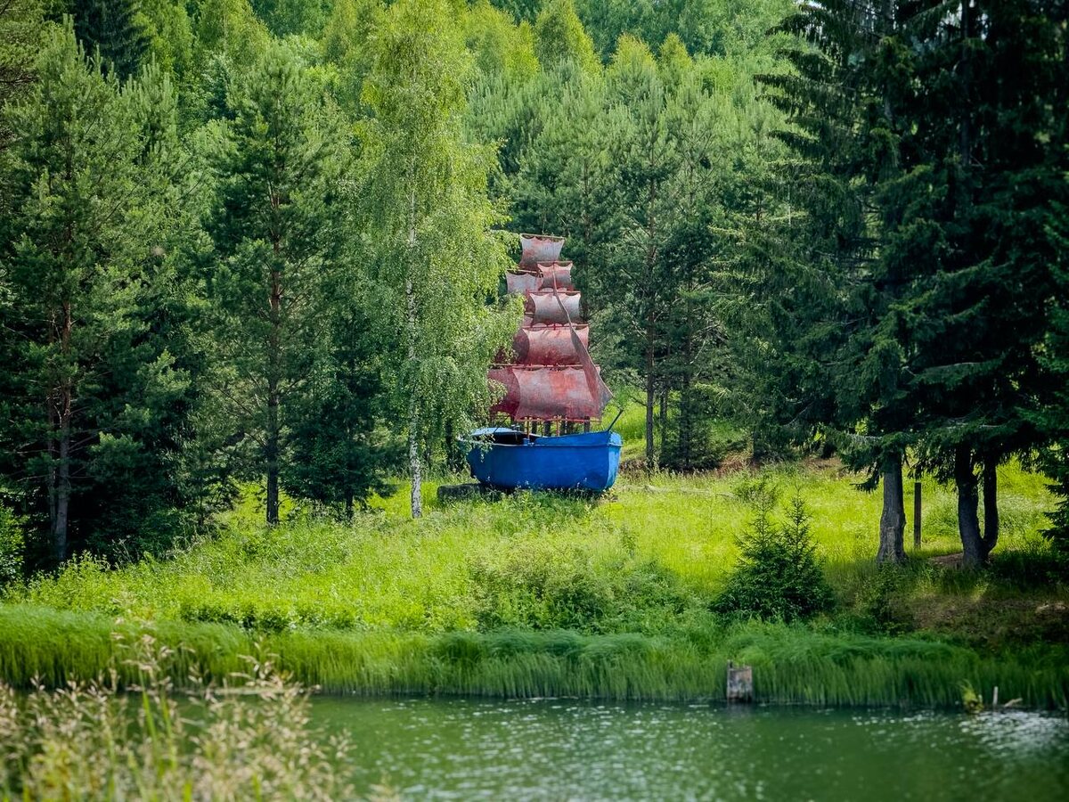 Корабль с алыми парусами А вы знали, что корабль с алыми парусами есть не только в Санкт-Петербурге? Для меня стало открытием, что в хорошо знакомом Староуткинске нашлась локация, о которой я не знал. Спасибо Марине за то, что открыла для меня это место. Находится оно на окраине посёлка, вдали от тех мест, где я обычно бываю. Корабль достигает 8–10 метров в длину и примерно столько же в высоту. Он стоит возле небольшого пруда, образованного неизвестным ручьём, впадающим в реку Утка выше по течению от Демидовского завода. Кажется, что стоит только столкнуть лодку в воду, и она поплывёт. Судя по состоянию краски, корабль приводили в порядок пару лет назад. Рядом с ним обустроена поляна для отдыха: есть кострище, обложенное для безопасности кирпичами, и запас напиленных дров. К сожалению, пока не удалось найти информацию о том, кто и когда соорудил и установил корабль. Поиск в интернете, опрос знакомых и местных жителей пока не принесли результатов. Есть ещё пара идей, и если удастся