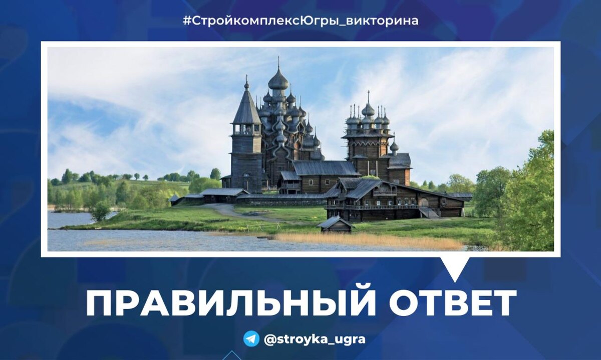 Друзья, вы – лучшие! Это мы обращаемся к тем активным, неравнодушным, любознательным эрудитам, которые регулярно принимают участие в нашей #СтройкомплексЮгры_викторина! 👍 В непростом статистическом соперничестве вариантов ответа на вчерашний вопрос (сначала вышел вперёд неправильный) большинство из вас всё-таки выбрали верный - Онежское озеро! Легенда о мастере Несторе является одним из самых популярных сюжетов, связанных с островом Кижи. Согласно местному преданию, Нестор построил храм Преображения Господня без единого гвоздя с помощью одного только топора. После завершения работы мастер привязал к кресту на верхней главке красную ленту, а топор бросил в озеро со словами «Не было, нет и не будет нигде больше такого чудесного храма». 📖 Величественная двадцатидвухглавая Преображенская церковь, построенная в 1714 году, до сих пор стоит на острове непревзойденной красавицей. Она единственная в мире признана ЮНЕСКО памятником деревянного зодчества планетарного, общечеловеческого м