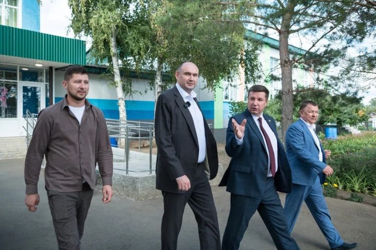Врио губернатора Оренбургской области Евгений Солнцев посетил Курманаевский район и дал поручения по благоустройству социальных объектов. В частности, глава региона посетил Курманаевскую среднюю школу. В школе три года назад провели капитальный ремонт по нацпроекту. Там обновили столовую и спортзал, снабдили кабинеты современным оборудованием. В то же время, благоустройства требует пришкольная территория. Евгений Солнцев поручил областному министерству образования профинансировать асфальтрование и обустройство детской площадки в школьном дворе. Особое внимание Солнцев уделил площади Ленина — главному месту притяжения жителей села, где находятся местная администрация, ЗАГС, музей и церковь. Врио губернатора дал областному минстрою поручение выделить средства для обустройства площади к юбилею Курманаевки. фото: телеграм-канал Евгения Солнцева
