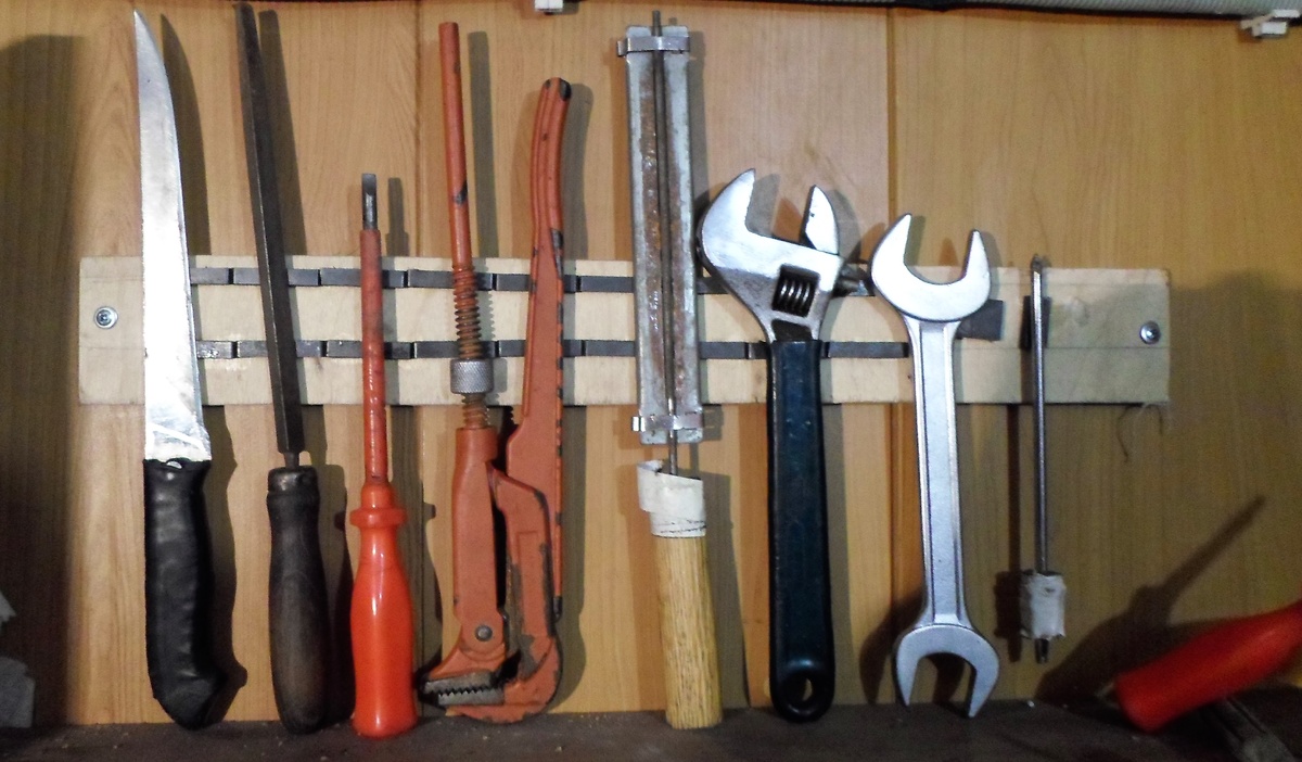 Магнитный держатель для инструментов в гараж своими руками! У каждого автолюбителя в гараже есть ключи, отвёртки, плоскогубцы и другие инструменты. Иногда кажется, что они прячутся от вас, как шпионы в лабиринте. Решение проблемы — магнитный держатель! Закрепите его на стене, и все инструменты будут как на ладони. А ещё вы освободите столько места, что сможете хранить там носки, которые "потерялись" навсегда. Сделать такой держатель можно почти бесплатно! Вам понадобятся: Разметьте на планке места для магнитов. Круглые магниты можно клеить в один ряд, как сосиски на гриле, а продолговатые — в два ряда, как карандаши в пенале. Подождите, пока клей не схватится, и закрепите планку в самом видном месте, например, прямо над верстаком. Вот и всё! Теперь ваши инструменты будут в порядке, а вы — в хорошем настроении.