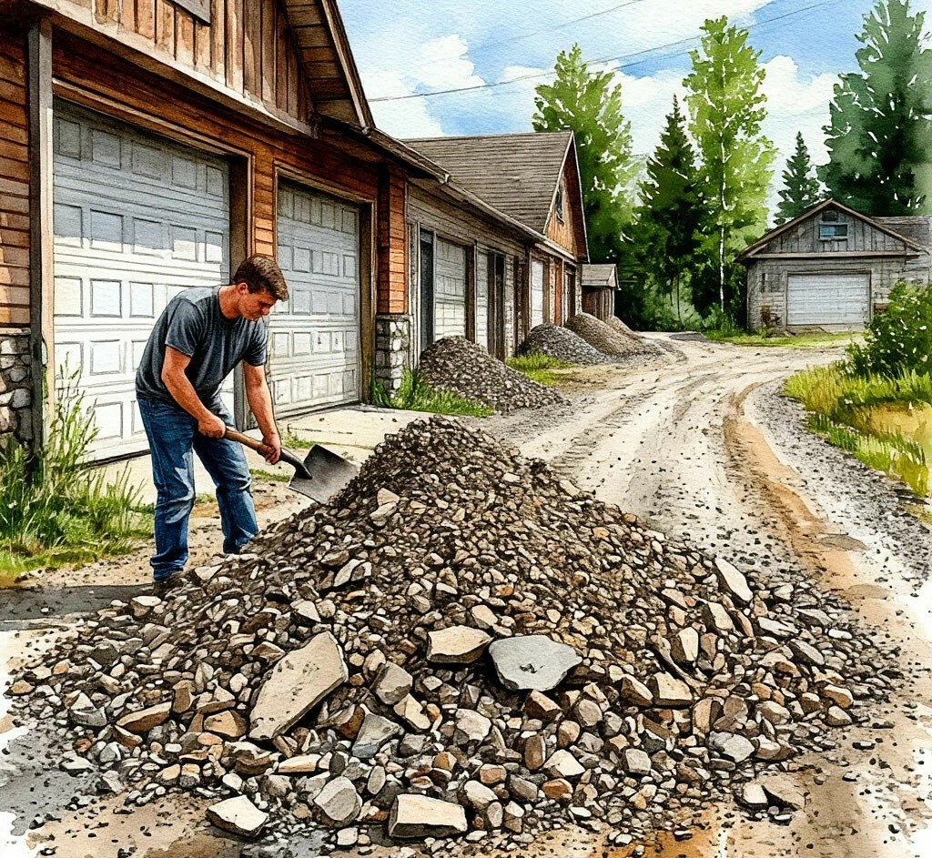 У нас в гаражном кооперативе нет асфальтированного покрытия. Просто гравийная дорога, которую периодически размывает, особенно после сильных ливней. Ямы и ухабы на дороге – привычное явление. Однажды я стал случайным свидетелем разговора одного из собственников гаражей с председателем данного кооператива. Собственник возмущался, что в течение долгого времени ямы на дороге не заделываются и просил привезти пару машин с щебнем, чтобы засыпать колдобины!? Через несколько недель машину с щебнем привезли. Однако кучи с камнем лежали на дороге долгое время, и никто их не хотел раскидать. Хоть кучи находились дальше моего гаража, причём на участке дороги, по которой я не никогда не ездил, тем не менее, решил взять лопату и раскидать щебень. Поскольку щебня было много, то устав решил сделать паузу. Дул сильный холодный ветер, и чтобы меня не продуло, я пошёл укрыться в свой гараж. Каково же было моё удивление, что через несколько минут пришёл ещё один мужчина с лопатой и стал разравниват