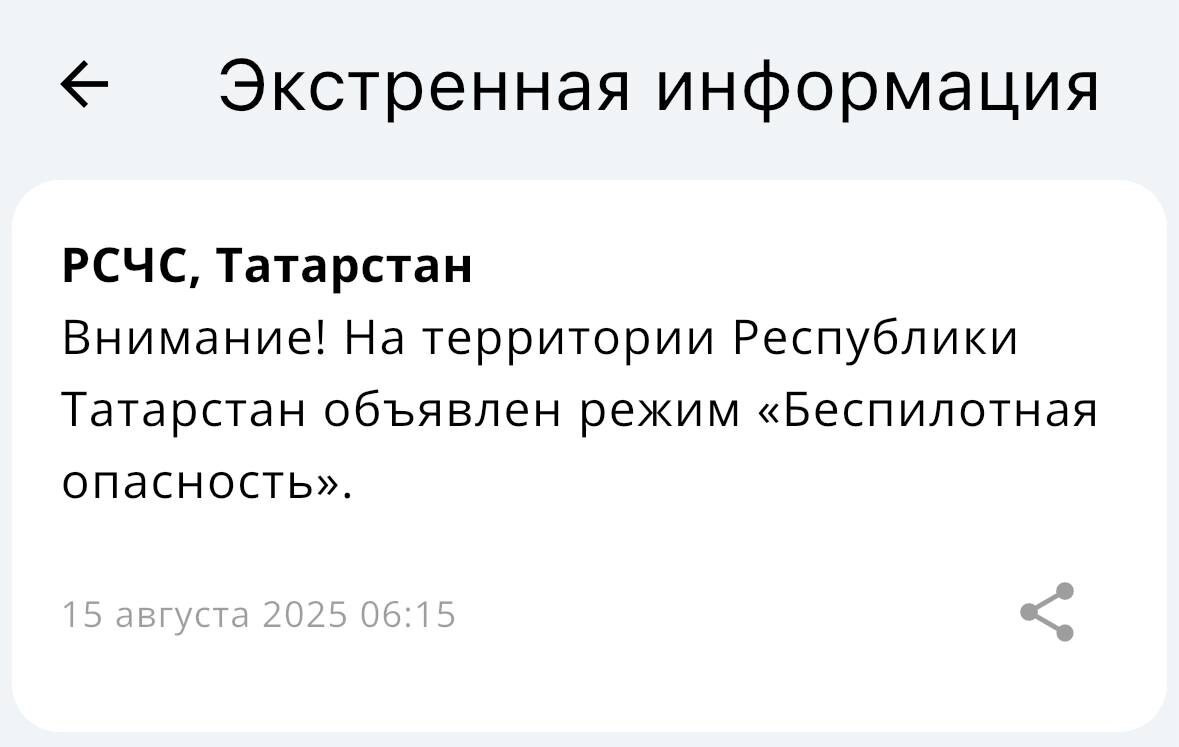 В Татарстане с 6:15 объявили режим «Беспилотная опасность». 🌟 Tatarstan News