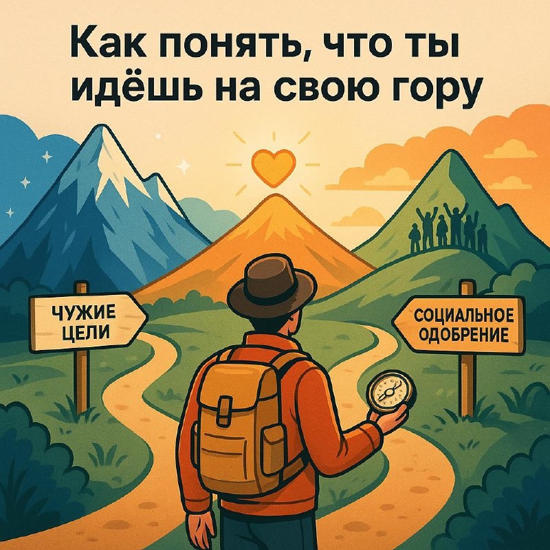 Как понять, что ты идёшь на свою гору 🎯 (Серия о восхождении к большим целям — финальный пост 5/5) За 5 дней мы говорили о том, как подниматься на гору шаг за шагом. Но самый важный вопрос остался в конце: А твоя ли это гора? 💭 Парадокс выбора цели: Мы тратим месяцы на планирование восхождения. Но минуты на выбор горы. Изучаем технику. Покупаем снаряжение. Составляем маршрут. А потом понимаем: поднялся не туда. 🔥 Признаки "чужой" горы: 1. Постоянно нужна мотивация Своя цель сама даёт силы. Чужая — забирает их. 2. Результат важнее процесса На своей горе каждый шаг приносит радость. На чужой — только вершина кажется ценной. 3. Сравниваешь себя с другими Свой путь уникален. Чужой — копирует чей-то успех. 4. Стыдишься рассказывать о цели Свою мечту хочется делиться. Чужую — скрываешь или оправдываешься. ⚡ Признаки "своей" горы: 1. Силы прибывают, а не убывают После тренировки я бодрее, чем до неё. После работы с клиентами заряжен, а не выжат. 2. Время летит незаметно 1.5