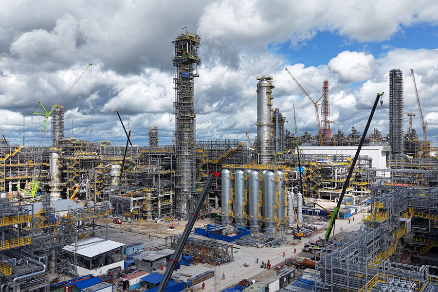 Уже поданы вода высокой очистки, топливный газ и технический воздух, активирована противопожарная система. Успешно проведён розжиг горелок первого парового котла. Параллельно идёт подготовка к испытаниям вентиляторной градирни, которая будет обеспечивать охлаждение и циркуляцию воды в производственном цикле. Чаша градирни заполнена технической водой, специалисты проводят центровку вентиляторов и готовятся к тестированию контура циркуляции. Завершено заполнение хранилища этиленгликоля объёмом 2500 кубометров. Этот реагент будет использоваться для охлаждения насосов и моторов, а также для защиты оборудования от замерзания в зимний период. На установках по производству полиэтилена завершаются общестроительные работы: выполнено бетонирование конст