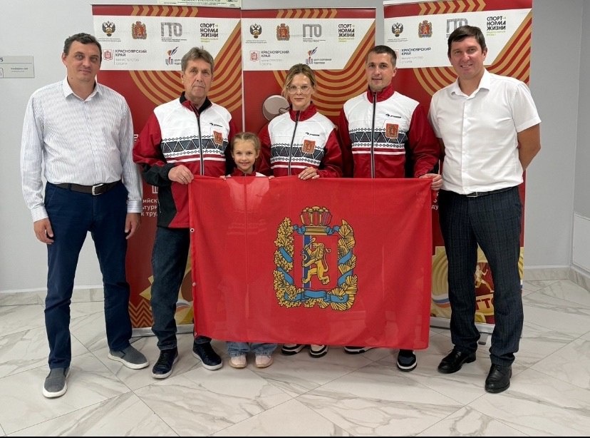 Семья Николаевых из Лесосибирска будет защищать честь Красноярского края на всероссийских соревнованиях! 🇷🇺 В Красноярске во Дворце спорта им. И.С. Ярыгина состоялось торжественное вручение спортивной формы Красноярского края и флага нашего региона семье Николаевых из Лесосибирска. Форму вручали: - мастер спорта международного класса по плаванию, участник двух олимпийских игр, двукратный обладатель золотых знаков отличия ГТО, региональный посол комплекса ГТО, директор краевой академии летних видов спорта - Алексей Сергеевич Ковригин; - мастер спорта международного класса по спортивному ориентированию, заместитель директора Центра спортивной подготовки Красноярского края - Станислав Витальевич Чеха. Напомним, семья Николаевых: Сергей, Анна, Мария и Борис, одержали победу на региональном этапе фестиваля ВФСК ГТО среди семейных команд, который прошел в Красноярске в конце июня. В течение двух дней 24 семьи из 23 территорий региона соревновались в спортивных дисциплинах и творческих ко
