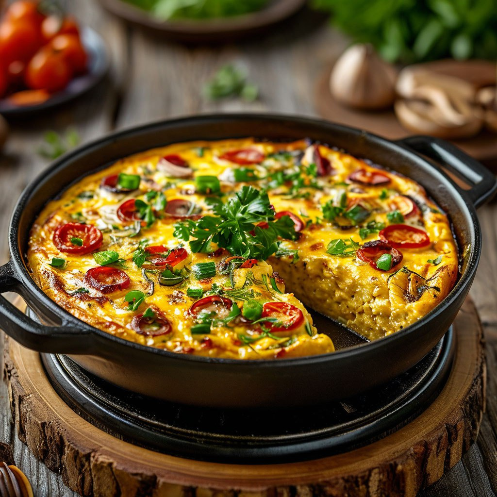 Фриттата — это итальянский омлет с начинкой, который легко приготовить в аэрогриле. Блюдо получается воздушным, сытным и низкокалорийным, а вариации начинок позволяют каждый раз создавать новый вкус. Идеально для ПП, завтрака или ужина! 🔥 Калории🥚 Белки🥑 Жиры🌾 Углеводы 220 ккал 15 г 16 г 4 г ✅ Быстро — готовится за 20 минут! ⏳